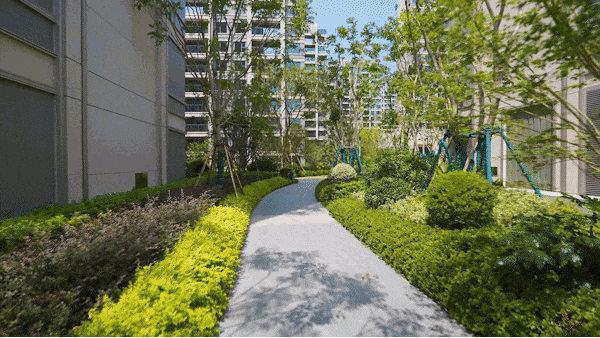 项目的景观设计也非常用心,围绕着建筑布局,打造了“一轴、一环、两脉”的特色景观。“一轴”指的是一条串联核心的中央景观轴,“一环”指的是一条环通社区的活力慢跑环,“两脉”则是两条联系南北的植物绿脉。