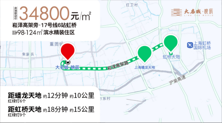 在这样的势能下,位于示范区线旁的「大名城映辰」二期,当前约3.48万/㎡的均价犹如原始股,3站直达虹桥,4站直达华为研发基地,未来大有可期,紧抓机遇,抢在区域价值腾飞前!