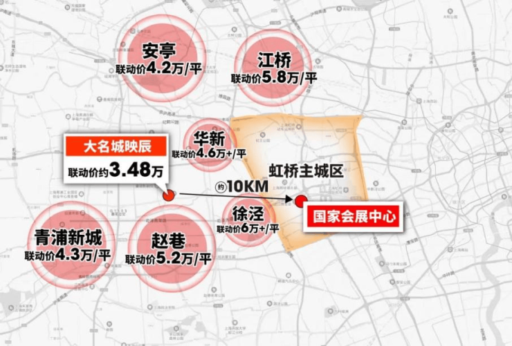 而项目联动价只有约3.48万/㎡,入手门槛远远低于周边板块,如果预算相对有限,但工作在虹桥商务区,或者想有便捷自驾条件,那项目非常适合。