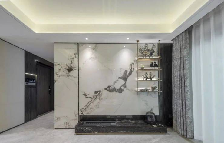 入户门采用手感厚重的 铸铝装甲门+飞利浦智能锁高端系列产品金茂定制柜 设置了玄关造景金属壁龛柜,女王高靴放置区等,大气美观。整个户型属于 真正的南北通透 ,且整体 约3.1米层高 ,室内装修完依然有纵向舒适尺度,丝毫不会觉得压抑。