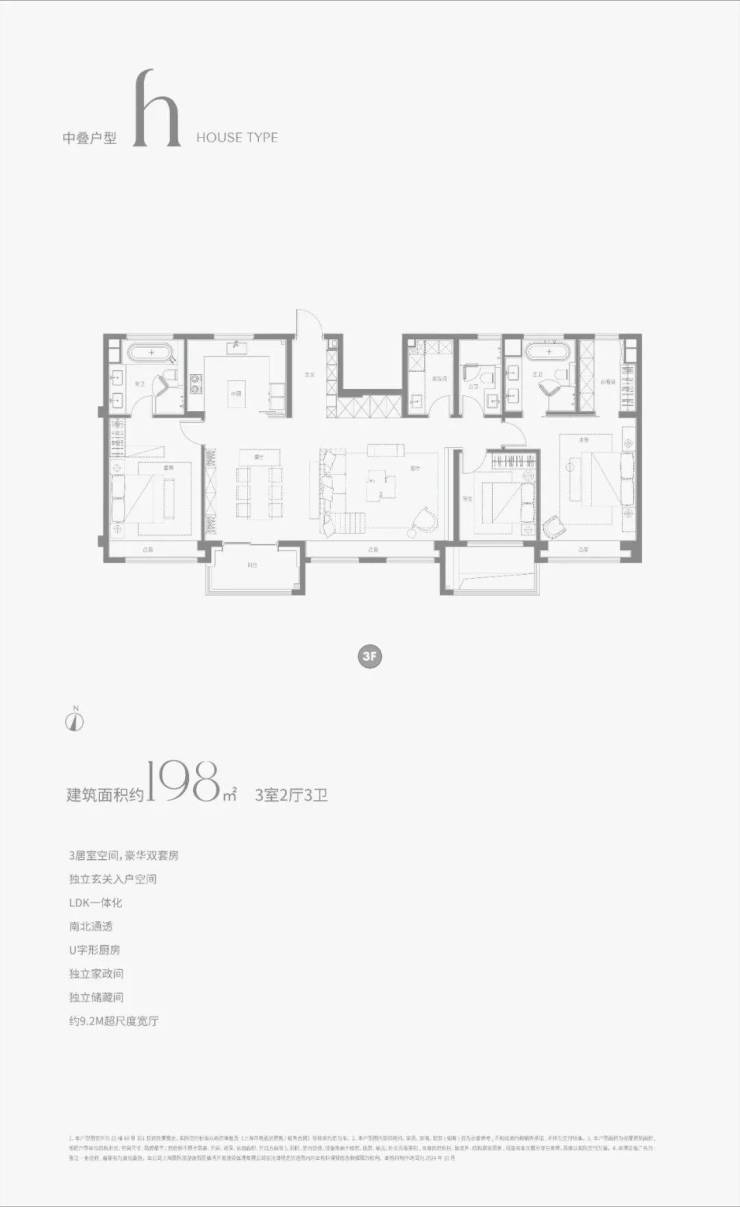 建筑面积约138㎡4房2厅2卫,做到了 3开间朝南+主卧套房设计+南卧带飘窗+卫生间干湿分离 ,空间更加阔绰!