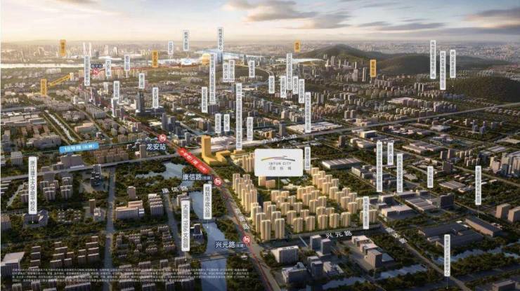 项目横跨 地铁9号线兴元路站 (在建)、 康信路站 (在建)两大站点,以轨道打破壁垒,一条地铁直达钱江新城、城东新城、滨江、西湖等高能区域,更高效的日常通勤外,还能享受到一脉市心的生活配套。
