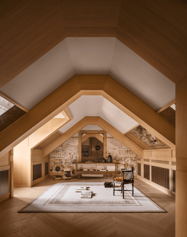 阁楼静谧如诗,坡屋顶的木梁交织出优雅的空间线条,一扇小窗嵌于墙面,透出庭院的绿意与远处的天光。阳光从窗隙洒入,在木质地板上织出斑驳的光影,如同“花厅”窗棂间跃动的时光印记。桐安里售楼处电话:400-9016-520⭐⭐