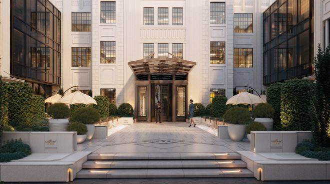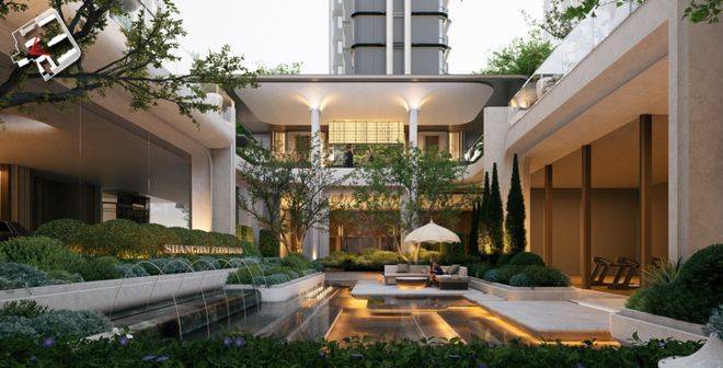 走进大堂与电梯厅,统一的色调与气质也得到了延续。根据我们拿到的方案剧透,首层大堂中,不仅还会出现独立的下沉庭院,还会有供业主使用的私享会客厅。