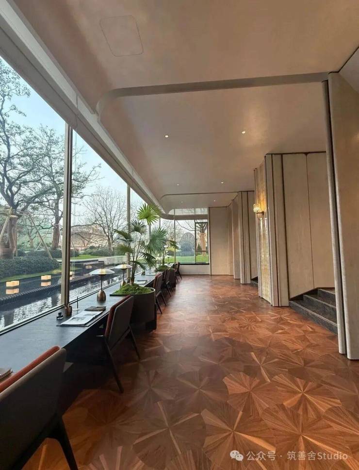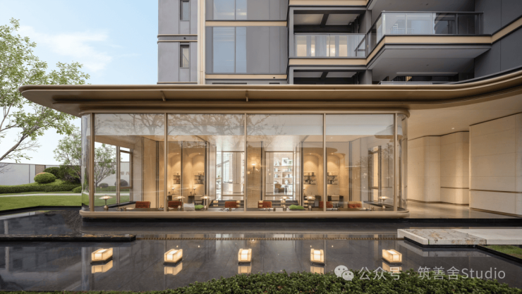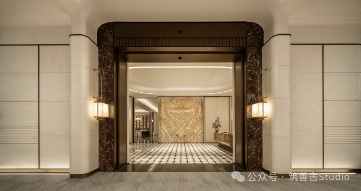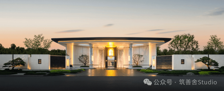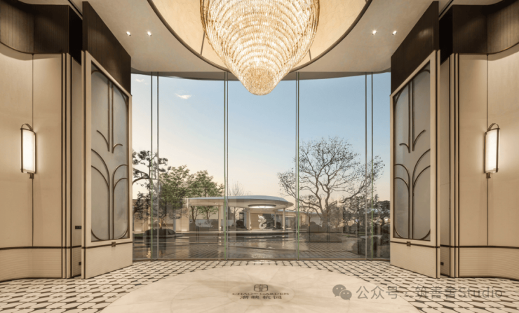 灵感源自上海前滩华尔道夫酒店,倾力打造约46米超长界面、9米挑高,以弧线繁复工艺和千万级巨资构筑高奢门厅。以月光米黄石材为主基调,弧形景墙、安第斯雪景奢石柱子,更严苛甄选名贵铁冬青,冠幅巨大、昂然迎宾,尽显尊贵门仪与华贵气度。