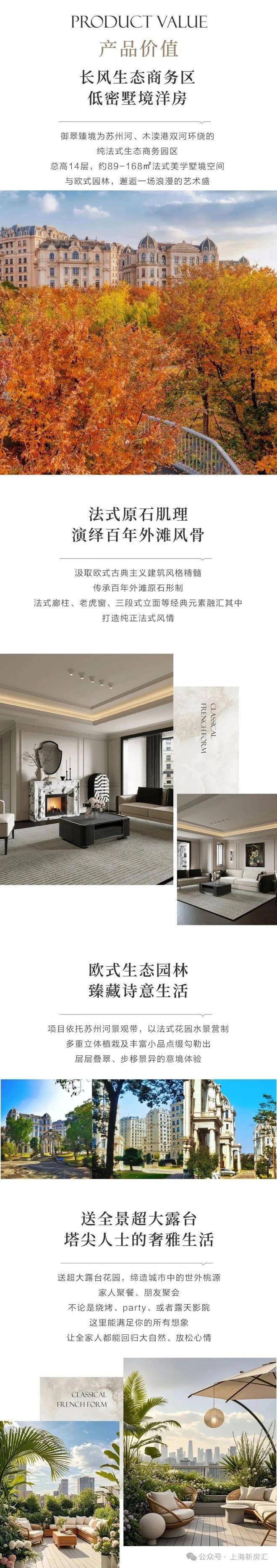 这个项目位于上海普陀区长风生态商务区,主打法式美学墅境,户型从约89㎡到168㎡都有,选择挺丰富的。它坐拥苏州河一线河景和1500亩绿化,环境非常不错,而且交通很便利,地铁2、13、15号线都在附近,出行很方便。