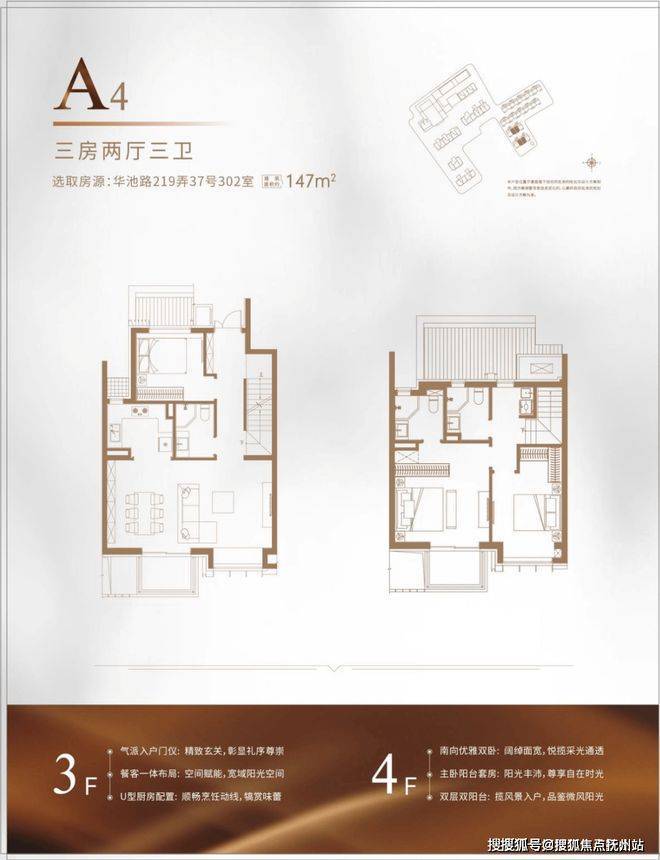 (下叠:155平A2户型,四房两厅三卫)