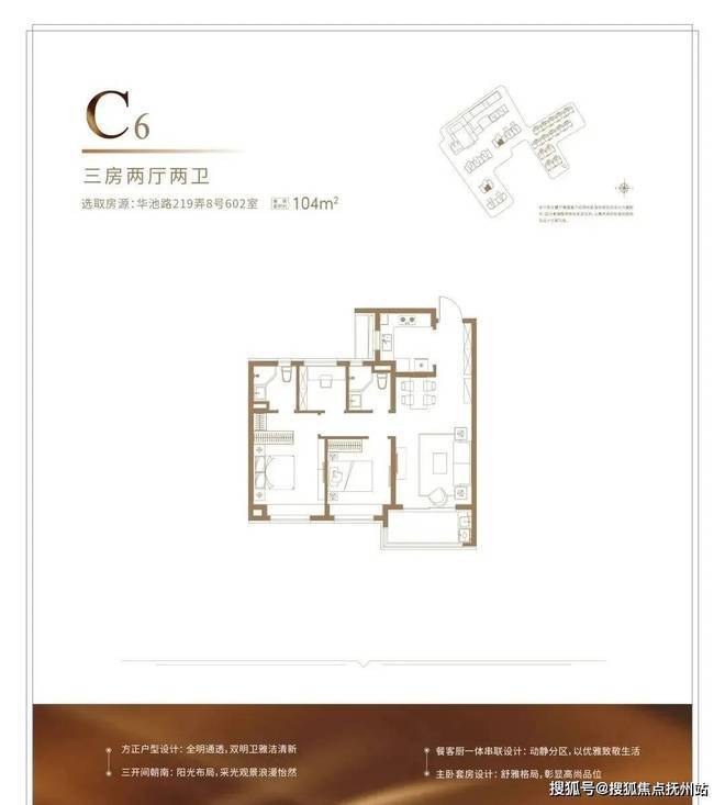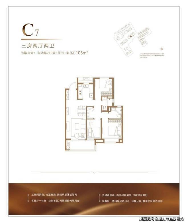 建面约104㎡的户型,能满足从二人世界到二胎生活的全生命周期需求,并且整体2-3开间朝南+客厅宽面阳台,整体的南向采光,视野以及尺度感很优秀,并不会感觉局促。