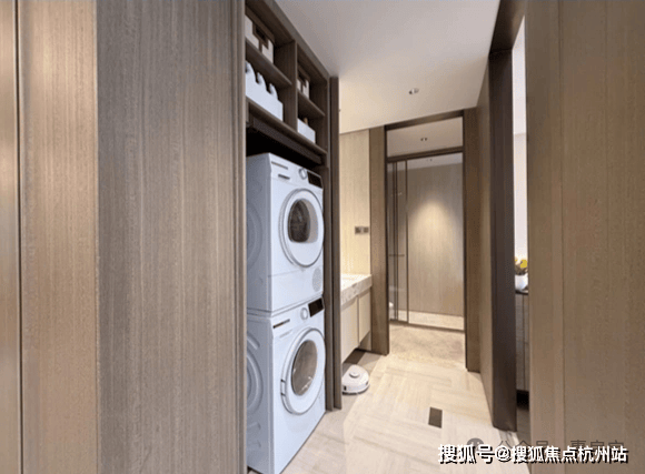 次卫采用四段式布局,设置独立家政间,并且洗衣机和烘干机同样也是交付标准(博世或同等品牌)!