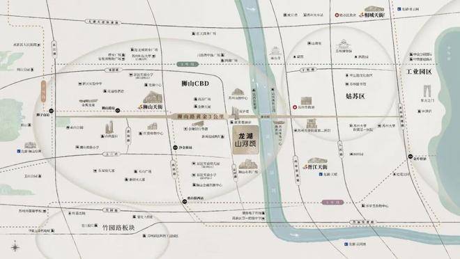 轨的交通网络无界通达全城。此外,苏州首家康莱德酒店也落址于项目旁边。