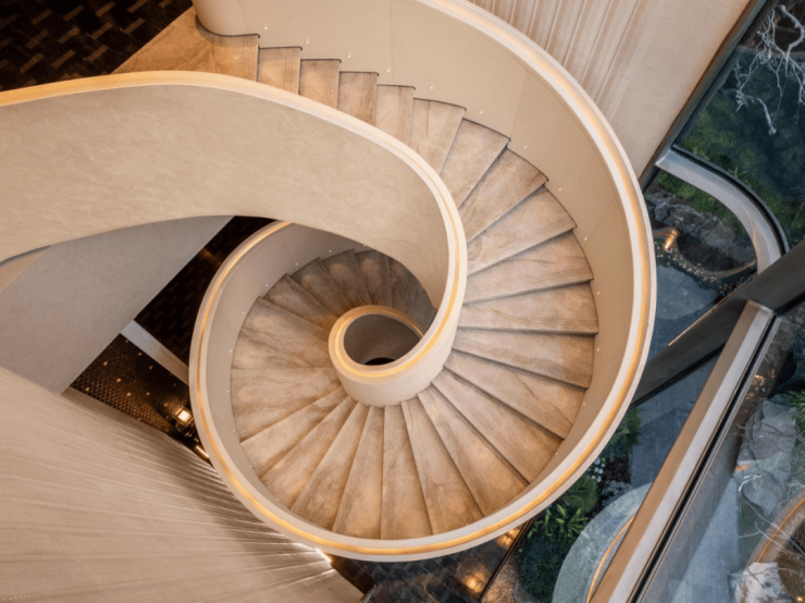 沿奢石旋梯拾级而上,步移景异,如同登临一场贯穿四季的艺术之旅。