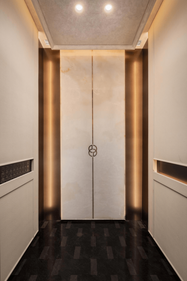 历经1.3亿年地质孕育,从遥远的伊朗精心挑选而来,铺陈于大堂空间,纯净如雪,静谧空灵。