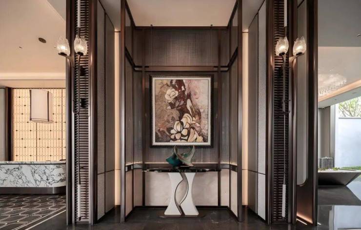 大门还是不错的,延续着卷大门的风格,一个刚需盘能有这样的大门已然相当不错了。萃取东方礼制精髓,沿东西向主轴设置多重归家院落,形成主入口至迎宾水院及度假水池为一体的礼序归家轴。层层递进的空间,在步移景异中,营造出多重归家仪式。