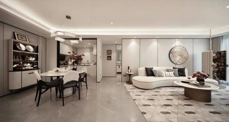 建筑立面融合滨江33年精湛工艺,采用四面铝板设计,当然内天井、外天井及设备阳台的外墙面采用涂料,底层局部点缀石材,铸就「滨江精选」品质标杆。在整体设计理念上,摒弃了复杂的装饰材料和冗余线条的堆砌,引入现代建筑的设计思维。在工艺细节处理上,运用斜切工艺,增强了外立面的几何感和立体效果,同时搭配圆弧型材的巧妙应用,使建筑整体呈现出柔和而自然的视觉效果。项目采用全封闭式阳台设计,不仅使空间利用更加高效,也使得居住环境更加整洁、舒适。