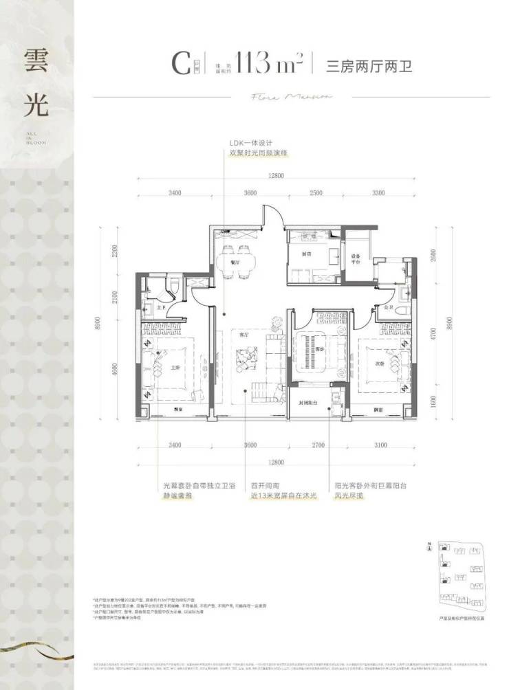 项目总建面约9万方,规划11幢12-16层纯高层,采用"南低北高"的错落布局,建筑限高50米,楼幢间距预计较为开阔,错落式布局,打造了两大主题园林空间。推出建面约99㎡与113㎡精致三居室,以及建面约108㎡、120㎡、128㎡、139㎡宽敞四居室,满足不同家庭需求。