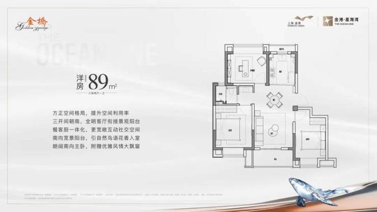 建面约89-100㎡小高层:均价35500元/㎡,总价约230-350万元56。其中89㎡户型为3房2厅1卫设计,得房率78%,配备横厅+双阳台。