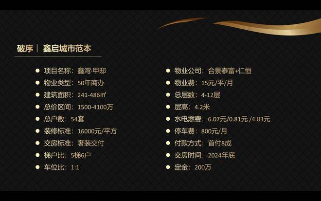 装修交付:奢装标准(1.6万/㎡),采用国际一线品牌,含全屋智能系统,交付时间为2024年底(现房)。14