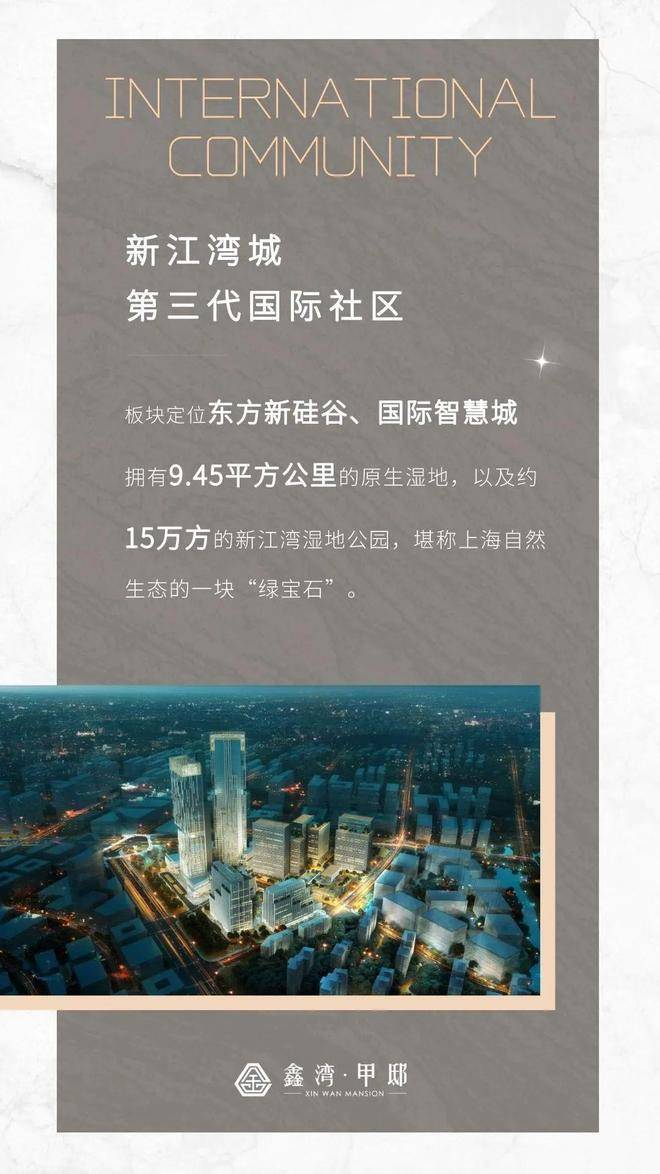 【鑫湾甲邸】位于第三代国际社区——新江湾城核心位置,是一座涵盖高端豪宅项目,嘉誉湾!