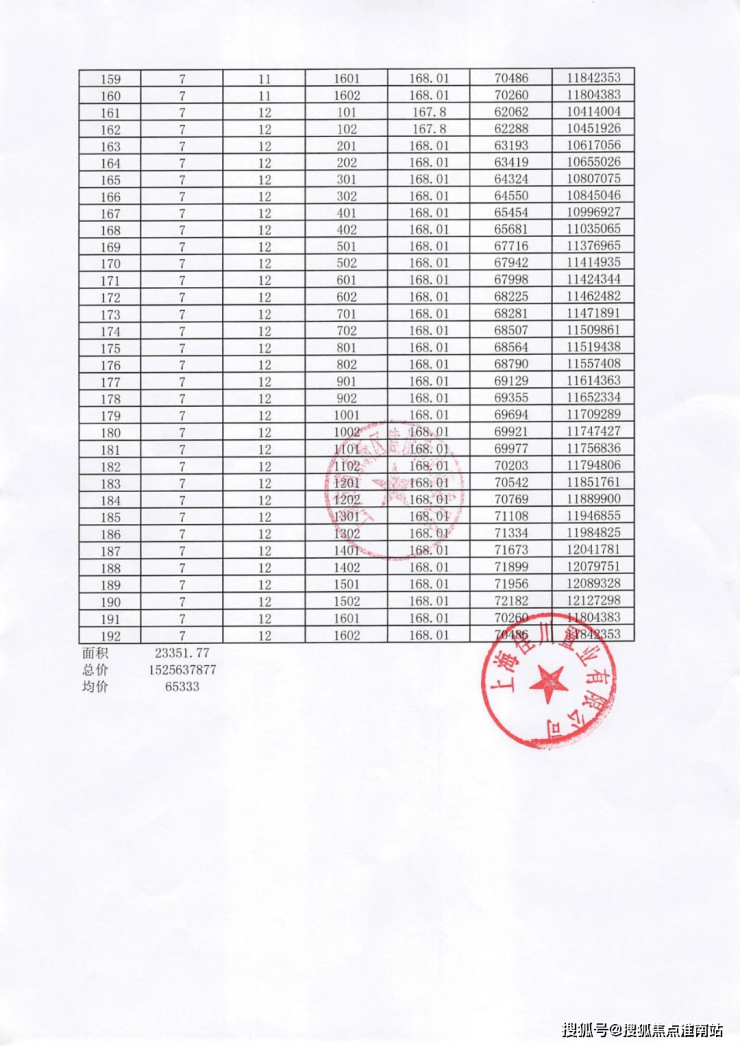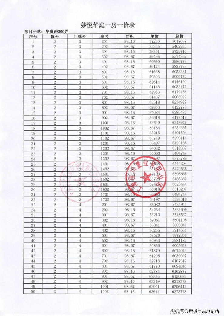 项目一房一价表▼