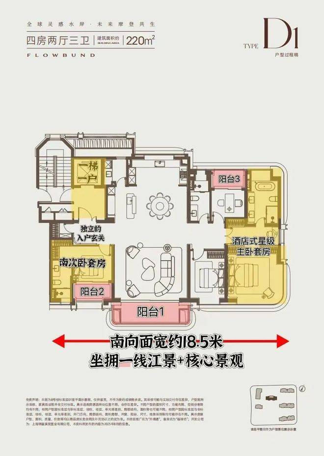 这套户型是终极改善作品。产品位于整个社区的楼王位置,南北毫无遮挡,坐拥一线江景+社区中央核心景观带,视野拉满。