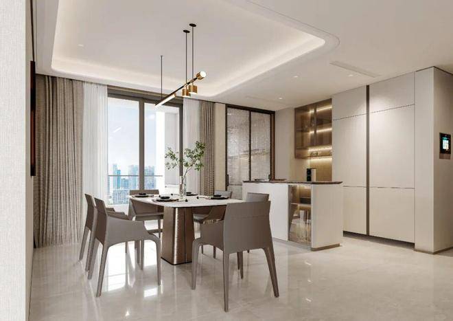 功能配置:标配中西餐厨+岛台,契合高净值人群需求;南北双阳台,景观视野出色。