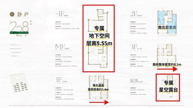 ✔上下叠均有大面积的附赠空间!就连上叠也拥有地下储藏空间,以及超大观景阳台以及顶层星空露台;