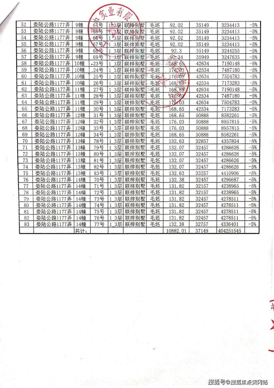 最后附上一房一价表:
