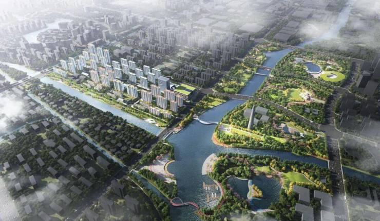 生态方面:项目东侧就是被上达河分隔成南部的智慧湖公园区块(一期)与北部的中央公园区块(二期),总用地合计89.29公顷。其中,智慧湖公园约29.29公顷,中央公园约60公顷。上达河中央公园南园2023年8月开工,预计2024年12月竣工。