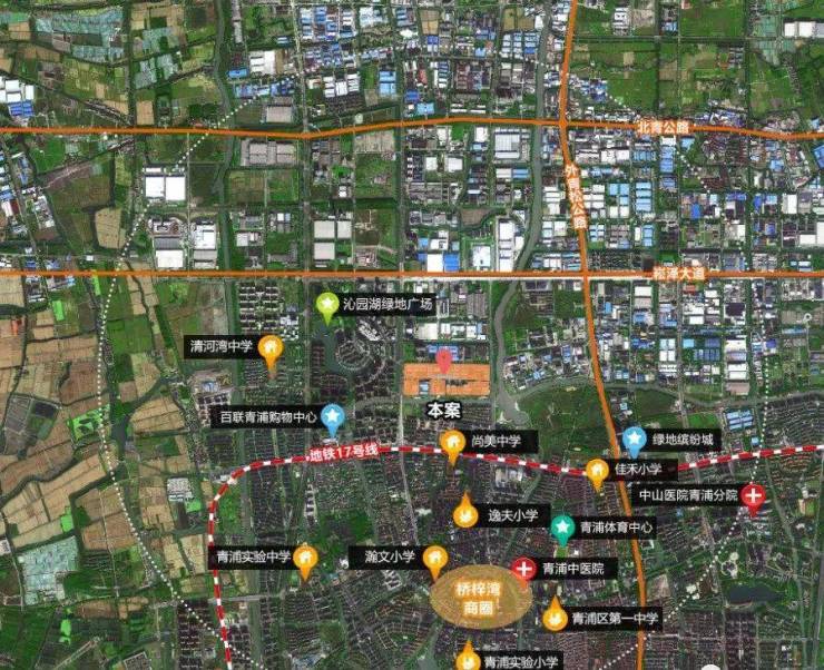 交通方面:项目距离17号线漕盈路站步行约1.4公里左右,一站可达青浦新城站,且后者未来将是拥有“三轨汇交”:沪苏嘉城际线(上海示范区线)嘉青松金线、轨交17号线将同站换乘。