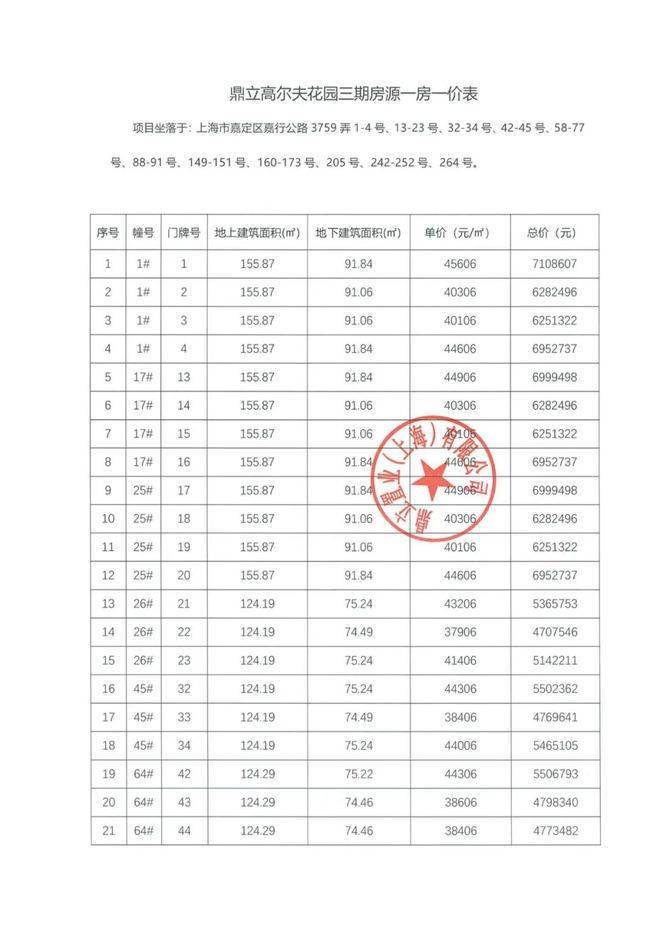 最新一房一价表: