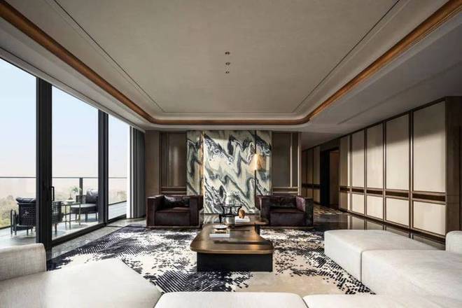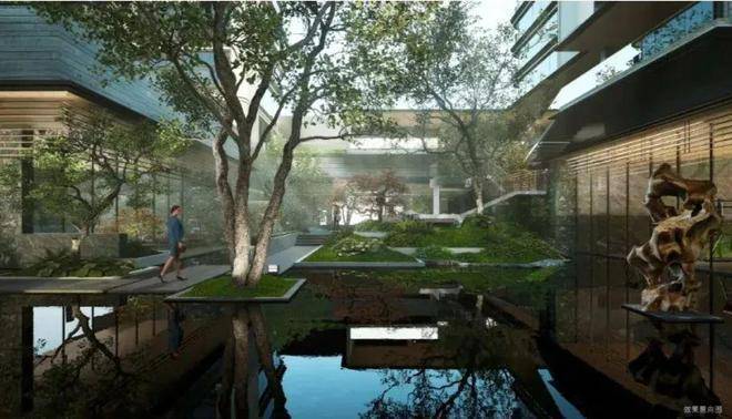 设计理念:融合苏州园林曲径通幽与现代大平层设计,主入口“凤起冕旒”以古代礼冠为灵感,景观设计借鉴吴门画派意境