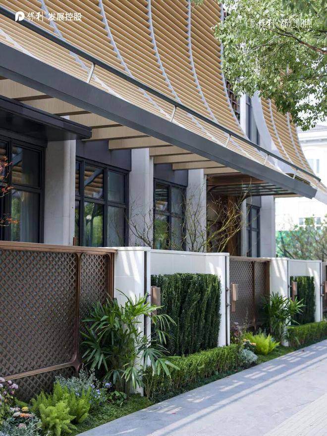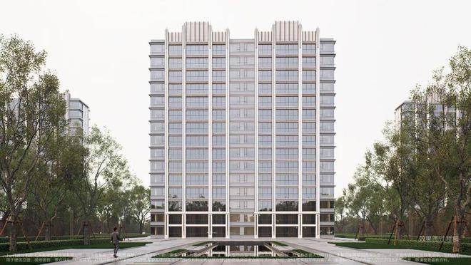 建筑与美学:融贯东方审美与现代简约的立面美学,立面采用精致铝线条(局部涂料)与现代质感玻璃打造,勾勒优雅轻盈的城市封面