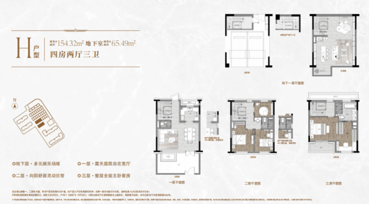 户型设计上,上下四层空间+超多附赠面积,有天有地,将居住的体验感拉满!