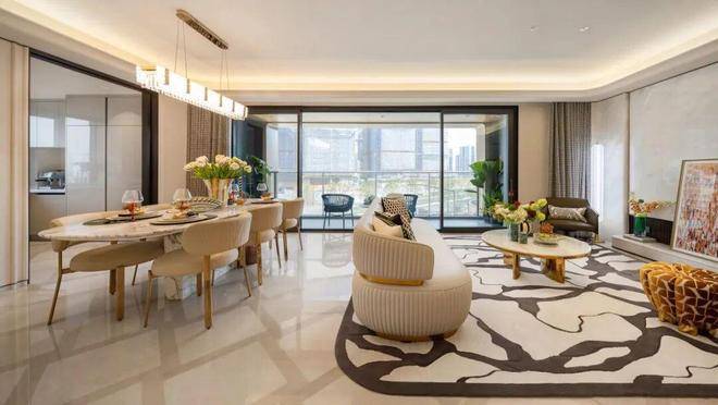 室内精装方面,餐客厅地面大理石通铺,家电品牌包括嘉格纳、汉斯格雅、大金中央空调等。