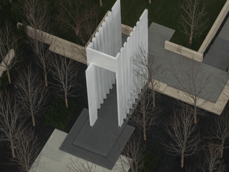 穿过公园进入社区前场,仪式感铺面,类高奢酒店设计,约10米高的「精神之门」矗立。