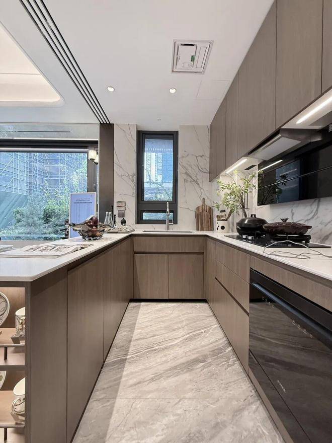 项目在餐厨空间的细节上把控也非常到位,U字型设计利用率更高,并且预留了冰箱点位。✅四季隐秀售楼处电话:400-8558-224✅︎✅︎✅