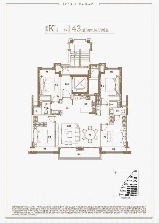 建面约142㎡下叠户型,一层是会客区,客餐厅大横厅设计,将生活的奢度打开!