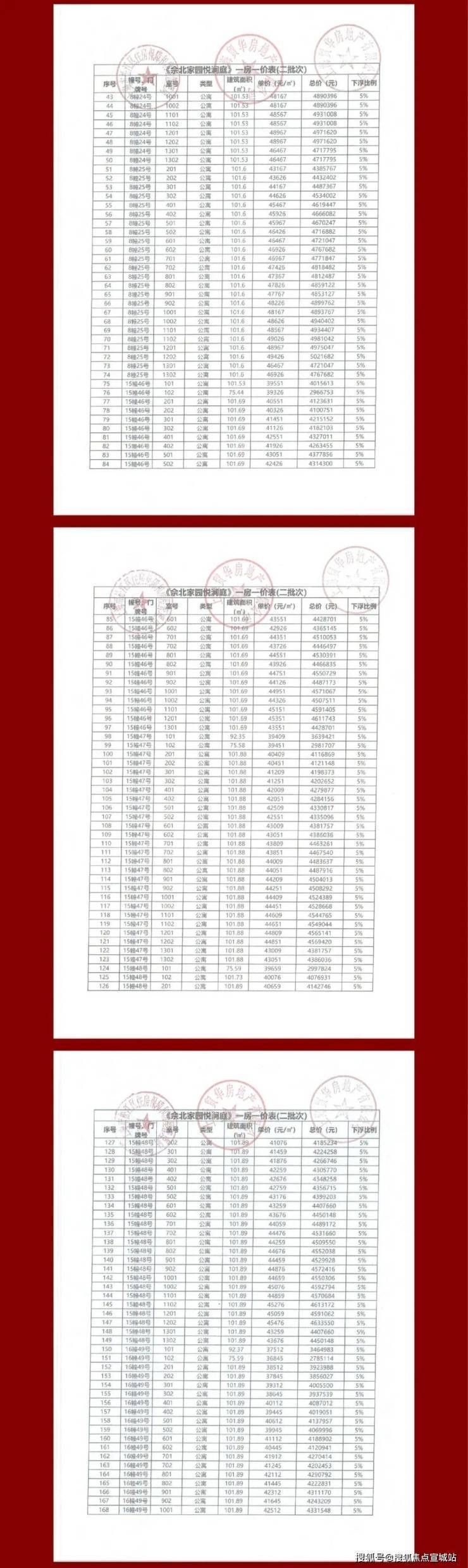 往下阅读项目一房一价表