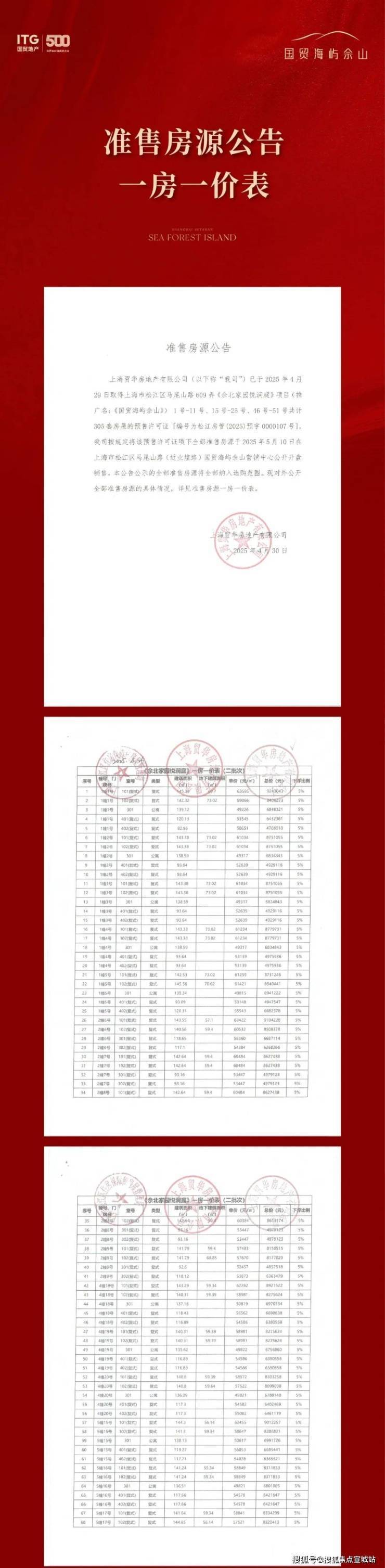 最新消息!松江佘山『国贸海屿佘山』加推305套建面约70-201㎡公寓/叠加;均价47621元/㎡认购金30万;认购时间:5月1-5月5日;售楼处线上火热预约中!