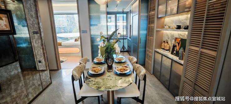 项目拥有一座约1600㎡度假酒店中岛,整个中岛内拥有海岛风层叠水池、社交客厅以及庭院架空层,共鸣多样化松弛生活场景。再以50年树龄的乌柏点缀,整个社区之精致,甚至能媲美豪宅。