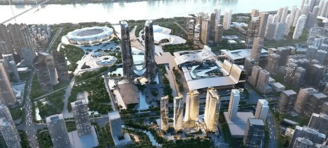 建筑设计 荷兰UNStudio事务所操刀,以“天幕聚落”为理念,玻璃外墙呼应杭州丝绸文化,塔楼呈流线型地标13