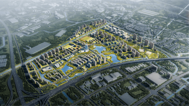 东区规划约1400亩土地,整体架构为“一核、一带、两轴、多组团”,聚焦商务研发功能。