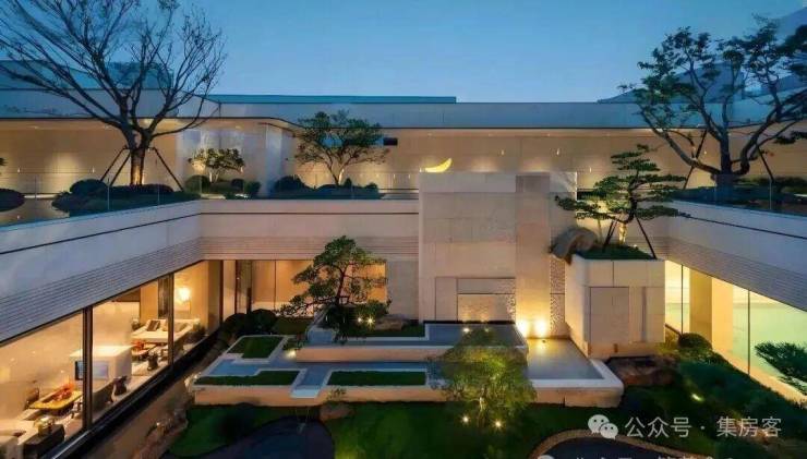滨江松川境:划定奥体新豪宅4大标准|「超级单品」静奢美学安放在奥体|169-199㎡“低密+顶序”纵揽奥体顶豪! 门头气势恢宏。做了约80米宽,6.5 米高。大门材质用的是熔铜,入口处还设置 25 米长叠级水景承托整个入口,沉香米黄、蓝翡翠潘多拉等多种名贵石材搭配,每平米光石材成本就是近万元。▲下沉式庭院会所实景图