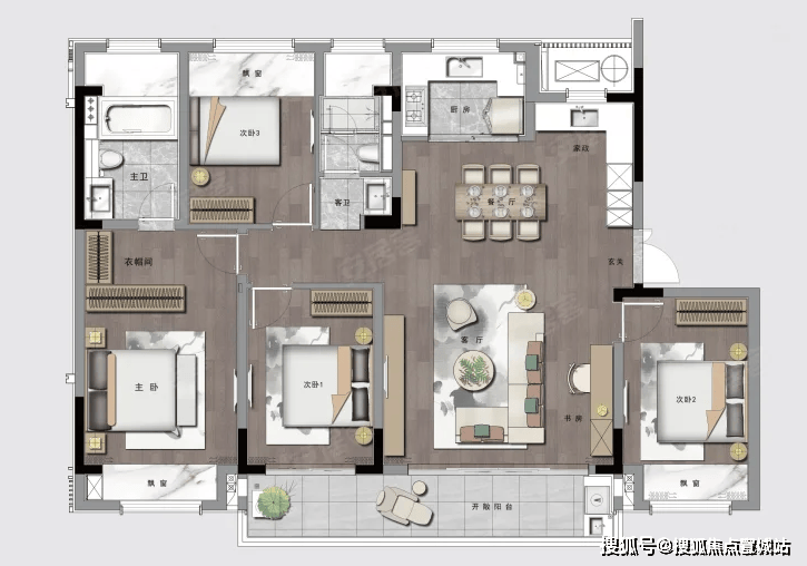5,本批次房源的建筑面积段在142.89-191.64平,其主力户型: