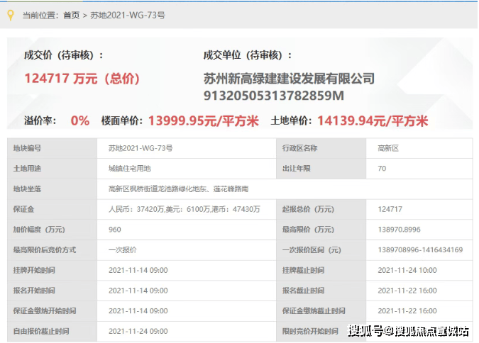 山语澜院,即,苏地2021-WG-73号地块,位于高新区枫桥街道龙池路绿化地东、莲花峰路南,是2021年11月25日,苏高新以底价124717万元竞得,成交楼面价14000元/平。