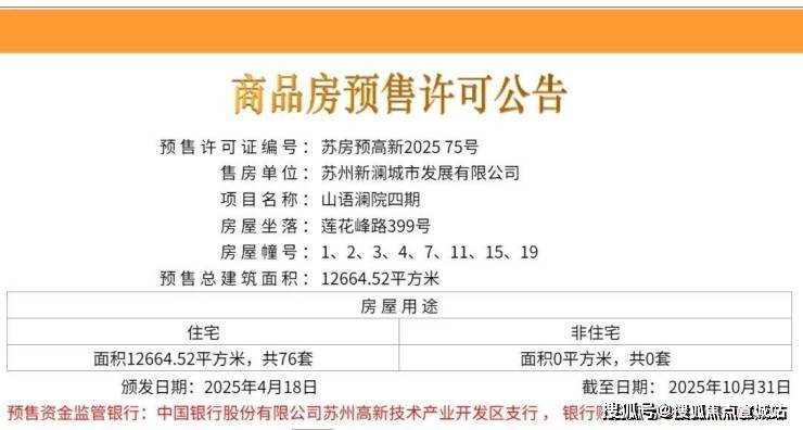 山语澜院加微咨询:400-8673-567高新区枫桥板块新批次房源取证,均价29500元/㎡,主打143-192㎡低密洋房及叠加别墅,由苏高新开发,定位纯低密社区。