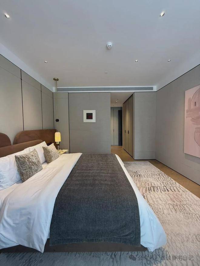 边套户型横厅设计,客厅约5.3米的面宽保证了空间的尺度感,客厅及南侧卧室的大面积落地窗,加上北面大面积飘窗,约270度的采光+视野,保证了室内充足的自然光线。两南一北的卧室布局,尽可能把南向尺度给到卧室,提高居住的舒适性。宽敞的步入式衣帽间,主卫双台盆和宽敞的淋浴区,每一个清晨都是感官的享受,每一个夜晚都是身心的彻底放松。