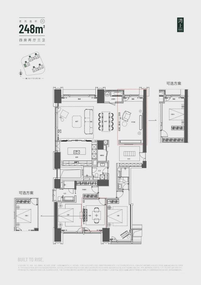 建面约248㎡4房2厅3卫更是别出心裁!是今年上海豪宅市场首次出现的定制户型,龙盛为业主定制了2+1+1房,3+1房,及纯4房三种自由交付选择,满足了现代家庭多元化的居住需求。