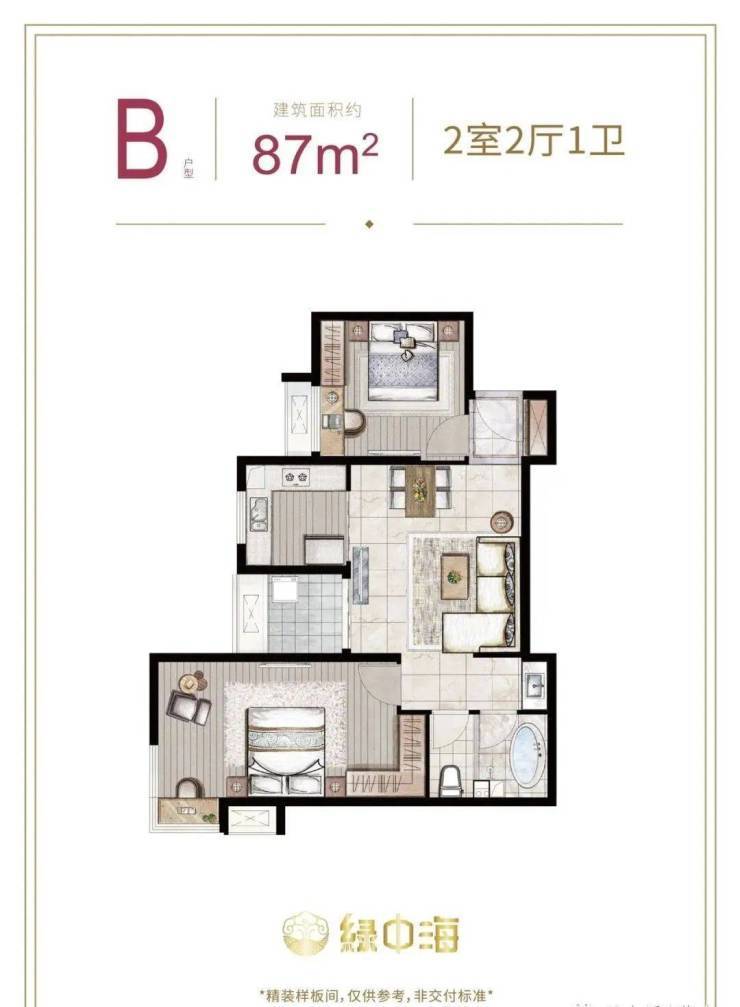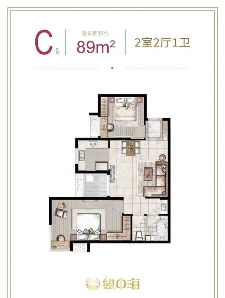 建面约87-89㎡2房2厅1卫