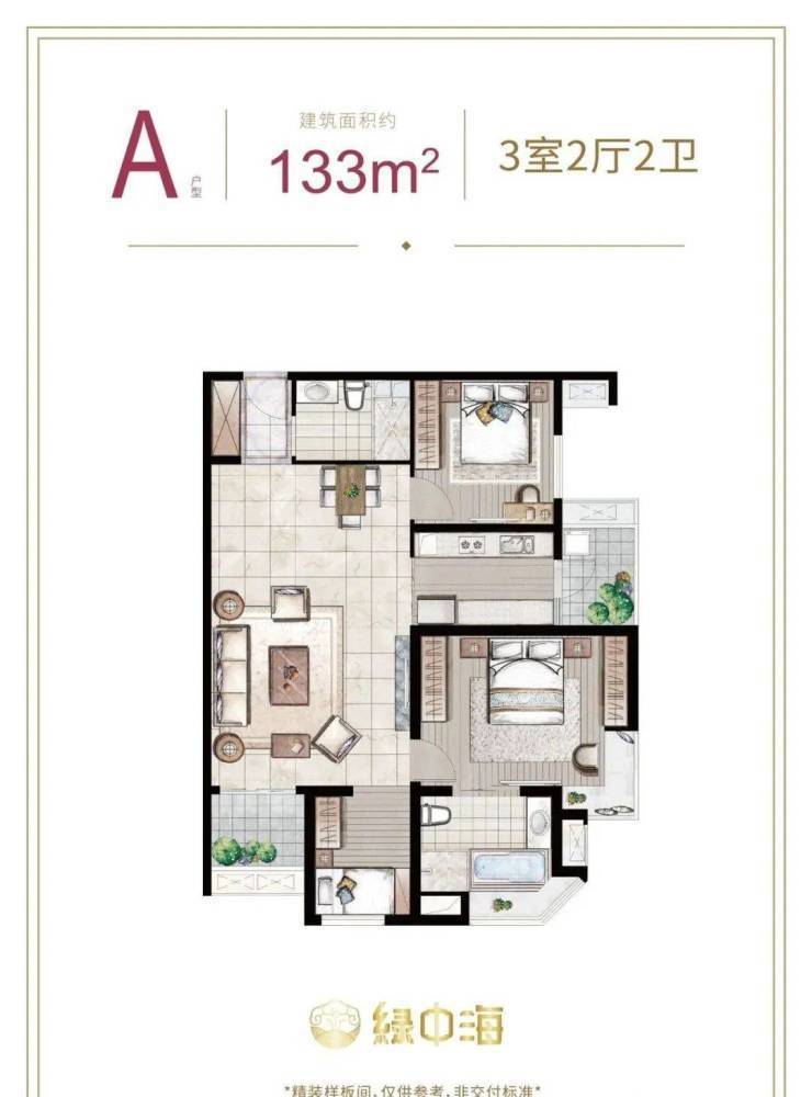 建面约133㎡3房2厅2卫